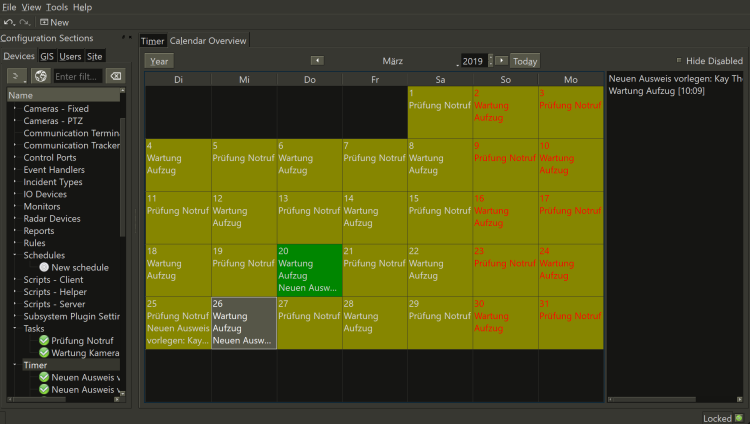 A new device to plan one-shot or recurring tasks has been added. This way it is possible to define for example maintenance cycles for integrated sub-system devices or other tasks which need to be executed by users of the system. When the task is due it goes to the pending list of the user either in Viewer (thick client) or in the mobile app.